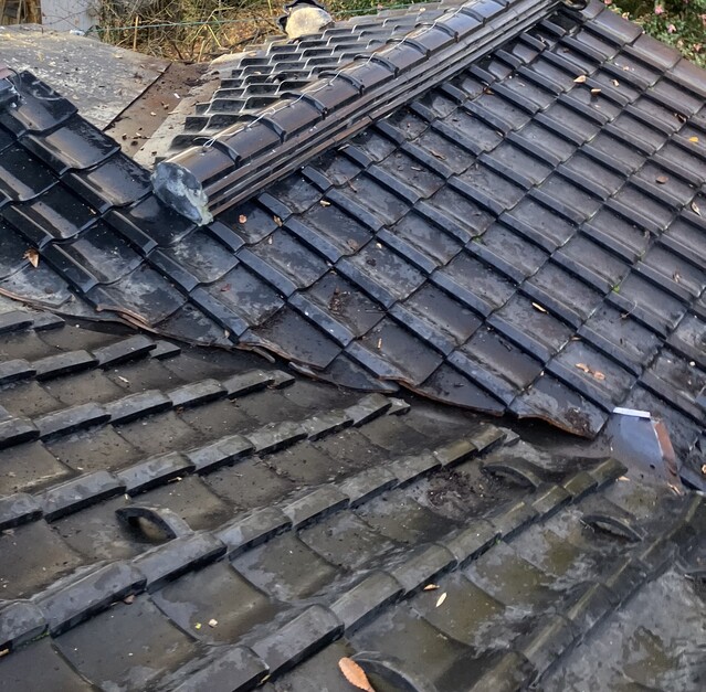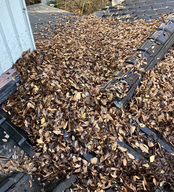 屋根の枯葉落とし枯葉です!('Д')